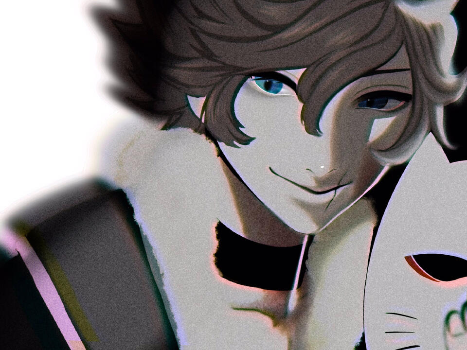• Jiyūna has severe anxiety from being repeatedly displaced from his home in his youth and losing his parents at a young age. He has difficulty speaking to people while showing his face, using the mask as a sort of psychological shield.• He was given the nickname Nana by Rinkah when he was younger. なな, Nana, is the colloquial word for Seven, and is also a play on his given name.• He is covered in scars, but few of them were acquired on the field. Most are a result of either operations, or disciplinary action for failing a mission. Being reprimanded by anyone instinctively causes him to flinch.• His right hand and forearm are mechanical, containing various tools for assassination. He gained this in the same accident that caused the burn along on his jaw and neck. An explosive that was intended to knock a carriage off the road unexpectedly went off in his hand, damaging it severely along with other parts of his body caught in the blast. He was reprimanded for his carelessness, but it was actually a fault in the explosive's production.• He learned basic wood carving from his mother, and makes masks in his free time. The fox mask he wears was made by her some years ago, as a birthday present.• His given name is spelled with the characters 璽 (Imperial Seal), 優 (of lithe movements), and 儺 (to drive away evil spirits).